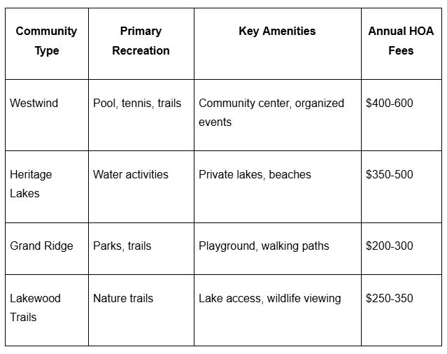 Future Planning: Continued suburban expansion follows sustainable growth principles, with new developments like sections of Summerfield and continued phases in Heritage Lakes Estates that preserve community character while accommodating new residents.
