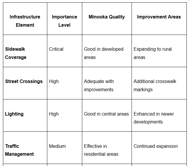 Infrastructure Investment: Municipal investment in sidewalks, crosswalks, and pedestrian safety features demonstrates commitment to supporting walkable lifestyles while maintaining community character and safety.